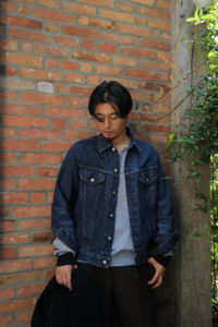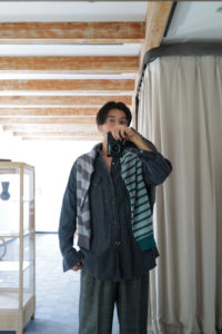攻めと守り。主役と脇役。スタイリングによって全く性格が変わってしまうようなニットにしたいと思って出来たのが今作。まず、レイヤーをする時。シャツ、ジャケット、Gジャン、レザーの下に着る時にはとことん脇役に回る。ヘンリーを2つか3つ開けて、ちらっとアシンメトリーの袖が見えている。時にはベストを羽織って、そして1枚で主役に抜擢する日があっても良い。お約束のデニムやスラックスにさらっと合わせ、小原さんの考えた「気分を上げたい時のニット」の役割もしっかり果たしてくれる。サイズに関しては、内側に着ることを想定した時のバランスを考慮してインラインから着丈を3cmほど短くしてもらった。僕より小柄な方でもLで着れるバランスで、ゆるっと着たい方、高身長の方に向けて既存には存在しないXLサイズを少しだけ作ってもらいました。サイズ詳細はLで着丈68、身幅57、肩幅43、袖丈68。XLで着丈70、身幅59、肩幅44、袖丈69.5。写真では僕(177/68)はLを着用。ドレトラやフレアデニムユーザーへ。先週のデニムジャケットとのサイズバランスも抜群です。最後に素材とケアに関して。先述の通り、洗うことで風合いが良化し、さらに柔らかくなります。10回洗濯のテストで着丈−1cm、肩幅+1cm、身幅+1cmとそこまで新品時より大きく変わりません。手洗いです。30度以下の洗剤入りのぬるま湯で押し洗い、すすぎの際に柔軟剤を入れるのも良し。小さなネットに入れて脱水5分。平干しで陰干し。もし、シワが気になればスチーマーかけてください。世になかなか存在しない二面性のあるニットです。金土に店頭発売。在庫が残りましたら、日曜正午に商品帖を更新します。