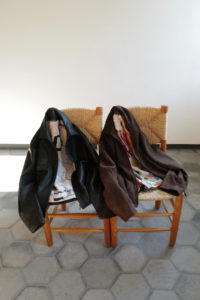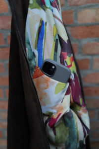 他の革にはないバネのような柔軟性、人肌に近いしっとり感に魅了されてしまうオイルディア。VILLEに最も相性の良いのが“鹿革”だと、自ら着用して実感している。2年前に出したブラックと同クオリティの革だが、今季のものはより吸いつくような極上感がある。そして、初のお目見えとなるディアスエードのチョコレートカラー。こちらもオイルをたっぷり含み、しっとりトロトロな質感。ミニマムなデザインに相反するように、内側はとことん攻めている。今作も裏地には、ハンドドローイングの抽象画プリントを載せたキュプラレーヨン。さっと脱いでハンガーにかける時でさえVILLEは、気分を上げてくれる。