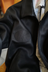 過去のことではあるが、VILLE1からVILLE2にアップデートする際、あらゆる羽織りの内側に着ることを想定し、要素を減らしてデザインを簡略化させ、シルエットもよりコンパクトにした。唯一のディテールは胸の“NK=NICENESS kakinoha”のパンチングワッペン。そして、袖のパターン設計が特殊で、適切にフィットしながら、運動性を兼備させたレザーの細かな剥ぎが実にユニークである。また、手を突っ込める外装の腰ポケの他、内側にも左右に胸ポケが隠れている。
