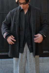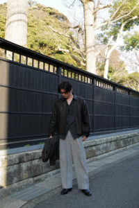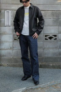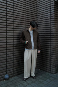 明けましておめでとうございます。本当は昨年の9月10月の予定でしたが、大きく遅れてしまい、VILLEが柿乃葉の初売り商品になりました。24年9月に発表した“海のVILLE”でやり切った感はあったものの、いざ、その他のレザーに目を向けようとなると、これ以上のものが見つからない。一時期は下火だったレザージャケットはここ数年でファッションシーンに返り咲き、今となっては様々なブランドから多種多様な考えでリリースされるようになった。良いなー、かっこいいなー、と思うものは沢山あれど、やっぱり僕のレザージャケットに対しての考えは変わらずで、外でも内でも着れることが大事である。夏以外の3シーズン、気温やその時の気分に沿わせながら、レイヤーを多用して体温調整することに面白さを感じるし、サンドイッチの中間位置にいてこそレザーはかっこいいと思う。Gジャンと同じ立ち位置であって、ある程度ジャストなことが必須なのだ。4作目のVILLEを考える頃もやっぱりその考えは変わらなかった。いつになっても廃れない、常に高頻度で手に取ってしまうVILLEが、今年も僕にとっては最善のレザージャケットである。