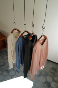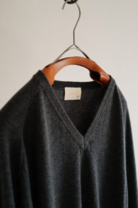 そして最後にSumikuro。タートルでこの色はイメージつかず、Vだから着たいと思った。今作では唯一のメランジタッチで、ダークグレーに白い毛がちらつく奥行き感。ソリッドでは無いのでカジュアルに着れて、でも素材はしっかりラグジュアリーといったナイスバランス。これは苦手という方は少ないと思います。色ものに合わせても良いと思うけど、僕はダークトーンでまとめるのが好き。真っ黒に合わせても重々しくならないことも、メランジなSumikuroの良さ。今作で唯一可愛さのない色です。