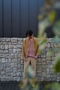 素敵な響きになりました、Flamingo。僕のイチ推し、最近なんだかとても気になっている色です。ピンクの服は“照れ”があるという方は多いと思うけど、このFlamingoはスモーキーピンクと言ったらいいのか、ベージュ混じりの柔らかなピンクで、案外着てみたら「え、いいじゃん、俺」となるはず。色々な方のデビューピンクはこちらから。ベージュや茶系、グレーなどにも抜群の相性。ファッションは新しい自分探し。大人の方に着てもらいたいな。これを着た瞬間、春がやってきます。