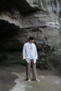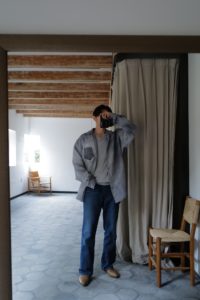さて、今作をどう着るか。 このシャツを作る時に僕がイメージしたのは、フレアデニムやドレスフレアとの合わせだ。シャツ自体にかなりの分量を持たせており、やや細身のフレアラインの上で、ゆったり揺れるバランスが最適だと思っている。ドレトラの時はトップスはやや緩め、フレアの時はオーバー目が気分。あたかも、ジャケットのように優雅に着たいのだ。極端だが、上の4つのスタイリングでも全てフレアを履いた。季節に合わせて内側にはTシャツ、タンクトップ、ニットを着れば良い。シャツonシャツも最適だし、ショーツ族にも抜群です。フレア、フレアとは言ってますが、太デニムでも良いし、自分に似合う好みのバランスで着こなしてみてください。サイズ詳細について、各部寸法は前回と同じ。03で着丈84、身幅69、肩幅56、袖丈62.5。04で着丈86、身幅71、肩幅58、袖丈64。僕(177/68)は04を着ています。見ての通り大きいので、もちろん03でも何ら問題なく着れます。 このタイミングで前作を測ってみると、繰り返し洗ってやっぱり少し縮みが出ていた。各部1.5cmから2cmほど。元々が大きいから縮んだことも気づかなかったが、イメージとしてハーフから1サイズ分くらいはダウンするはずなので、それも考慮した上でサイズで。前回の手記の繰り返しになりますが、ANSNAMのアテンションタグとしてはドライクリーニングで、水に触れることを避けてもらうルール。とは言え、これを買う方はにわかな人じゃないはずですから、当たり前に洗いますよね。その場合は、手洗いでお湯は使わないこと、中性洗剤使用、脱水はネットを入れて裏返しにして短めに(ボタンを包むように)、乾燥機は絶対NGです。あくまで洗濯に関しては、自己責任でお願いします。特にビスコースシルク。今週も金曜、土曜に店を開きます。数はそこまで多く作れませんでした。引き続き、予約や事前通販は不可です。在庫が残りましたら、日曜正午に商品帖に在庫を移します。今作もDeepな服好きに届くことを願っています。